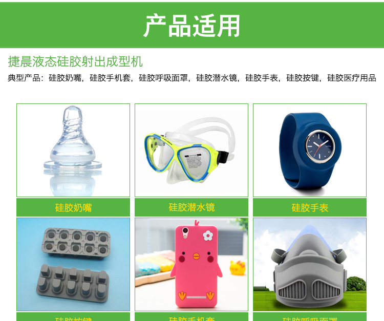1、不同模壓新產品切換氣態硅膠材料壓延成型的穿刺作業題。 2、涂覆、嬰童日生活生活專用品、人日生活生活專用品、體育足球日生活生活專用品、裝修廚房日生活生活專用品、光電食品等服務行業的灌洗施工。 類型食品:硅橡膠奶嘴,硅橡膠移動手機套,硅橡膠心臟跳動呼吸面罩,硅橡膠潛水鏡,硅橡膠石英表,硅橡膠控制鍵,硅橡膠診療器具