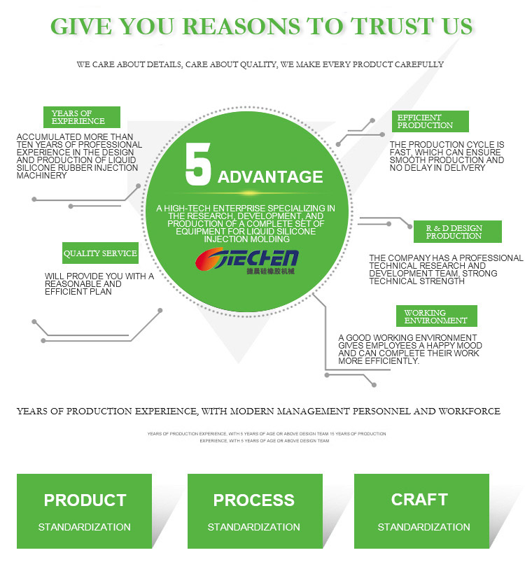 Company profile:Dongguan Jiechen Silicone Rubber Machinery Co., Ltd. is a high-tech enterprise specializing in R & D and manufacturing of liquid silicone rubber injection molding machine. The company has a professional technical research and development team, strong technical strength and perfect after-sales system to provide strong technical and service guarantee for customers. The company has advanced equipment, perfect technology, strong technical force, accumulated more than ten years of professional liquid silicone rubber injection machinery design and production experience, obtained a number of invention patents, reached the leading technical level in the industry.The company's liquid silicone rubber injection machine is widely used in medical, maternal and infant, auto parts, electronics, stationery, kitchen, diving, bathroom and other fields, and developed precision micro liquid silicone injection machine, liquid silica gel (solid to liquid) intelligent feeding machine, all-round to meet the needs of different customers."Liquid injection, Jiechen service" is the same principle we always adhere to. We welcome friends from all walks of life to guide and negotiate business!Contact person: Mr. Chen RuizhongTel: 86 0769 26628975Mobile: 13038846085Fax: 86 0769 26628579Address: Ji erheng Road, aoshitang Industrial Zone, Dongcheng, Dongguan, Guangdong, ChinaOfficial website: //www.hbzxmm.comCompany homepage: //www.jwww.hbzxmm.com//jiechenjx.1688.com